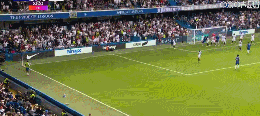 第45+9分钟,恩佐开出角球,若昂-佩德罗头槌破门!切尔西1-0领先富勒姆